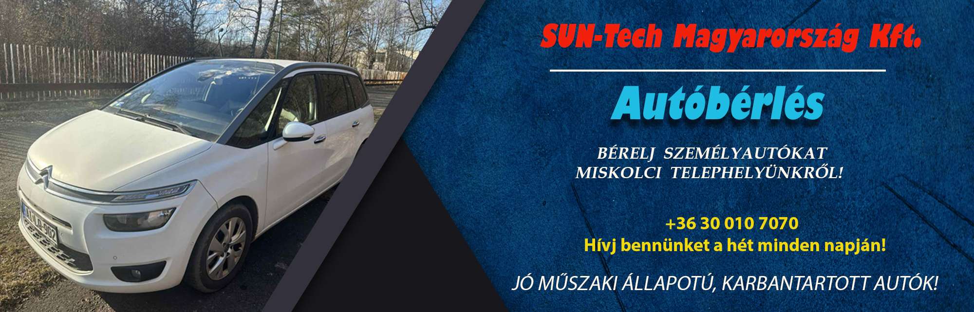 Autóbérlés már 7620 Ft-tól elérhető a SUN-Tech Magyarország Kft. Autóbérlés oldalán. Részletekért kattints és olvasd el figyelmesen a tájékoztatónkat!